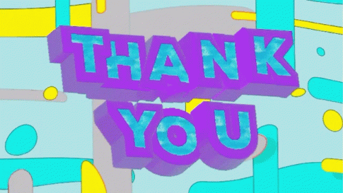 Animated text 'THANK YOU' in purple and blue, set against a dynamic, colorful background.