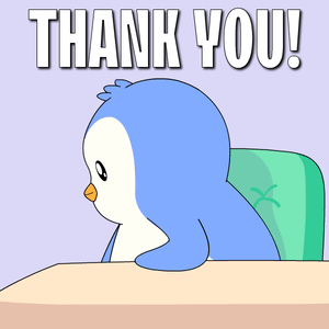 Pudgy Penguin, a cute cartoon character, expresses gratitude by shouting 'THANK YOU!' through a megaphone.