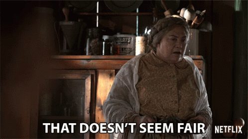 Kathleen Turner as Miss Mary Shaw expresses frustration, stating 'That doesn't seem fair'.