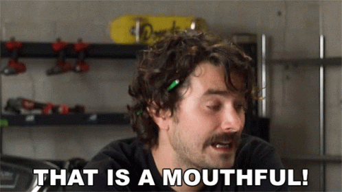 James Pumphrey exclaims 'That is a mouthful!' in a garage setting, with pencils behind his ear.