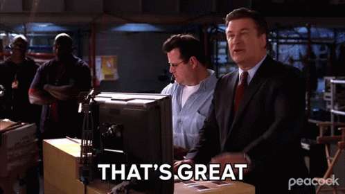 Jack Donaghy (Alec Baldwin) delivers his iconic line: 'That's great, that's why you're here.'
