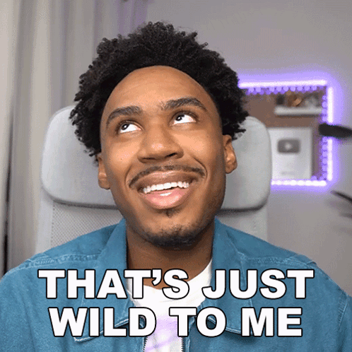 Imurgency reacts with a smile to something wild, featuring the popular phrase 'That's Just Wild To Me'.