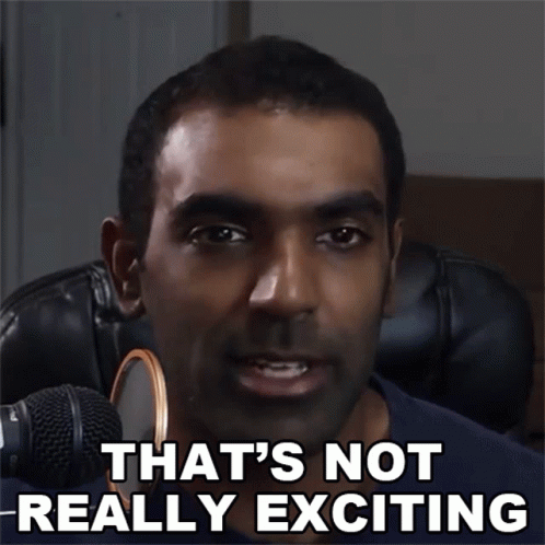 Sanjeev Thiyagarajan speaks into a microphone with the text 'That's Not Really Exciting' displayed.