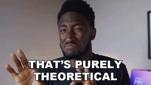 Marques Brownlee explains a concept, stating 'That's purely theoretical' with a gesture.
