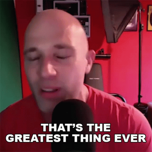 Simon Miller exclaims 'That's The Greatest Thing Ever' into a microphone.