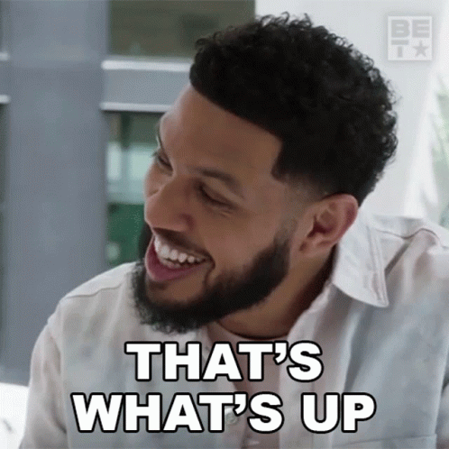 Marques King, a man with a beard, smiles and says 'That's what's up' with enthusiasm.