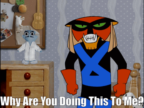 Brak from The Brak Show asks 'Why Are You Doing This To Me?' in a memorable scene with a puppet.
