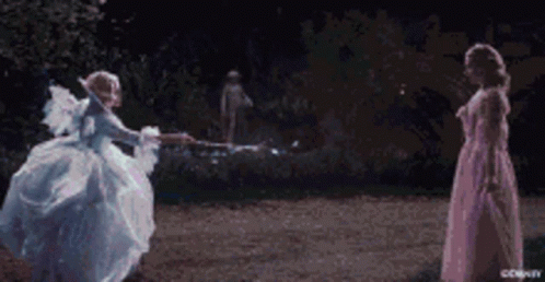 Witness Cinderella's enchanting transformation into her ball gown and glass slippers, aided by magic.