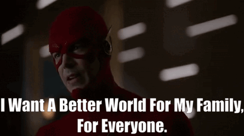 Barry Allen as The Flash expresses his desire for a better world for his family and everyone.