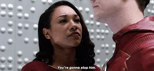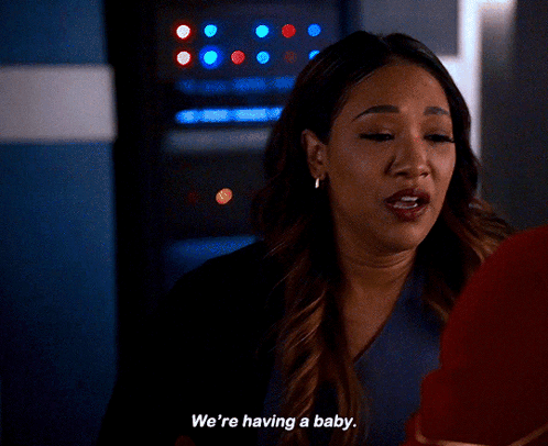 Iris West Allen (Candice Patton) joyfully announces, 'We're having a baby,' in a heartwarming moment from The Flash.