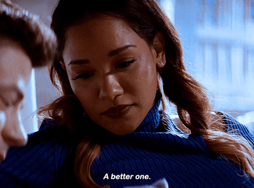 Candice Patton as Iris West Allen from The Flash smiles, delivering the line 'A better one.'