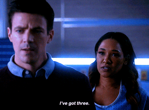 Iris West Allen, played by Candice Patton, in a scene from The Flash, saying 'I've got three.'