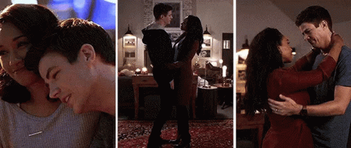 Romantic moments between Barry Allen and Iris West-Allen (WestAllen) from The Flash, featuring hugs and tender embraces.