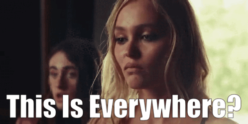 Jocelyn (Lily-Rose Depp) from The Idol looks concerned with the text 'This Is Everywhere?' overlaid on the scene.