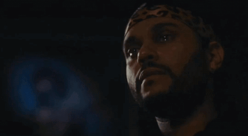 Tedros (The Weeknd) from HBO's The Idol looks on with sadness, watching a performance on screen.
