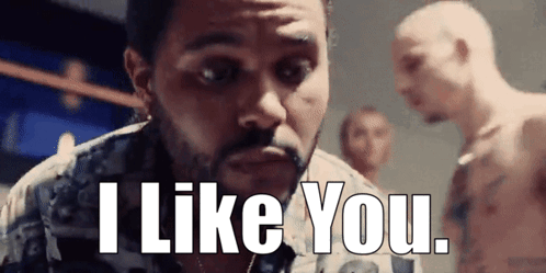 a man with a beard is standing in front of a group of people and says `` i like you '' .