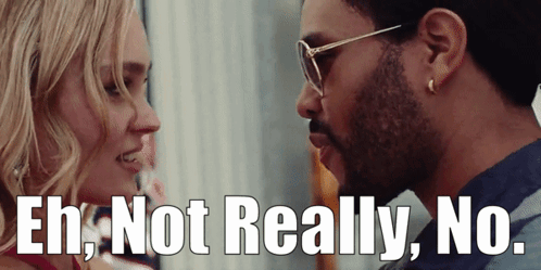 a man and a woman are looking at each other with the words " eh not really no " above them