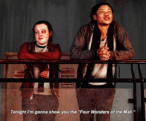 Riley Abel (Storm Reid) shows Ellie the 'Four Wonders of the Mall' in The Last of Us TV series.