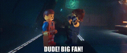 Rex Dangervest meets Emmet in The Lego Movie, exclaiming 'Dude! Big Fan!' in this iconic scene.