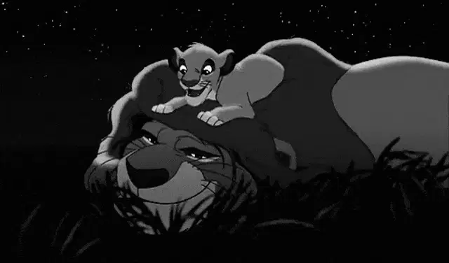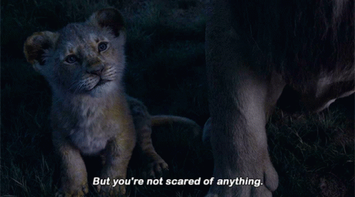 Simba, the lion cub, looks up at his parent and says, 'But you're not scared of anything.'