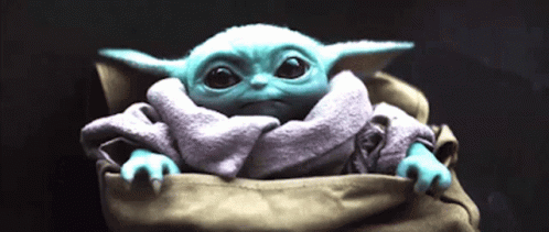 Baby Yoda, also known as Grogu, cutely waves from his pram in The Mandalorian.