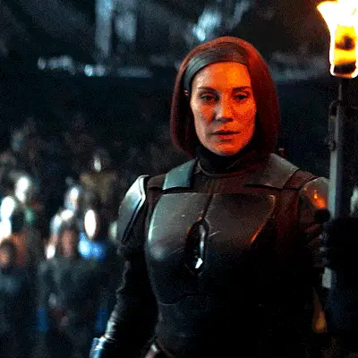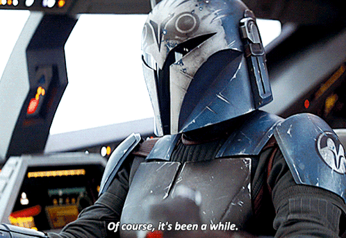 Bo-Katan Kryze from The Mandalorian says 'Of course, it's been a while' in her cockpit.