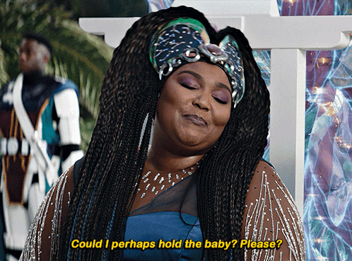Lizzo as the Duchess of Plazir 15 asks to hold the baby in The Mandalorian.
