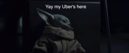 Grogu, also known as Baby Yoda or The Child from The Mandalorian, excitedly awaits his Uber.