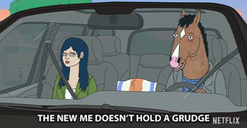 BoJack Horseman drives with Diane Nguyen, declaring 'The New Me Doesn't Hold A Grudge'.