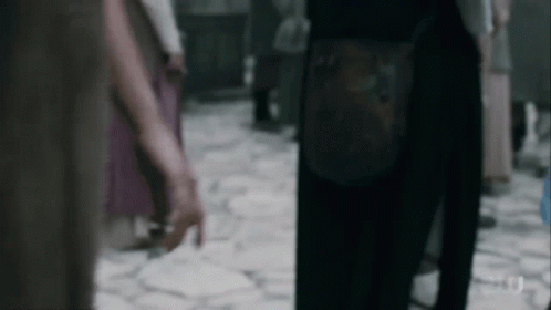Luna attempts to pickpocket someone in a dark, fantasy setting from The Outpost Series, featuring Maeve Courtier Lilley.