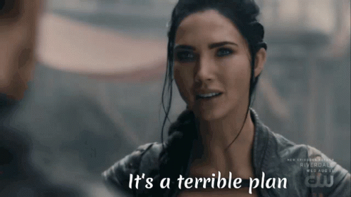 Jessica Green as Talon and Jake Stormoen as Captain Garret Spears discuss a 'terrible plan' in The Outpost.