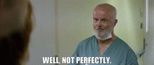 Dr. Trimble, played by Gary Jones, delivers the line 'Well, not perfectly' in a medical setting.