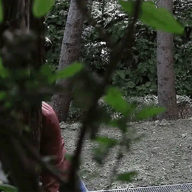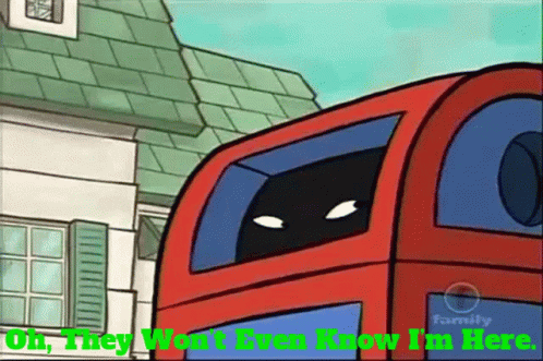 Agent K from The Replacements hides inside a red double-decker bus, believing no one will know she's there.