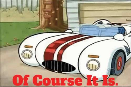 Carter's car from Disney's The Replacements with the caption 'Of Course It Is'.