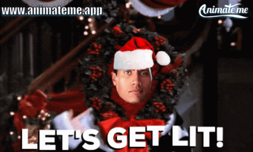 Dwayne 'The Rock' Johnson in a festive Christmas meme, wearing a Santa hat and saying 'Let's Get Lit!'