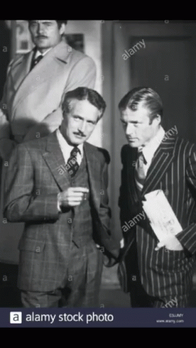Three men in suits and ties stand seriously, likely from the classic film The Sting.