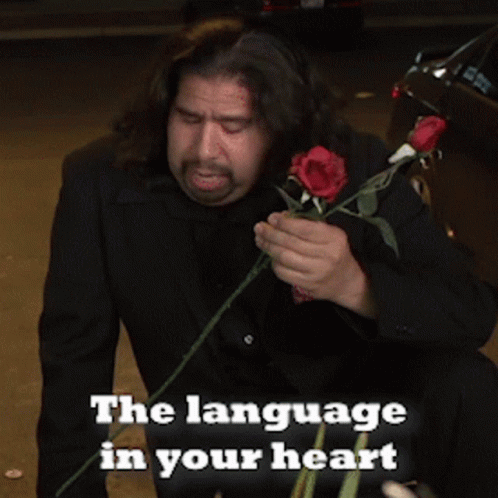A man from 'The Studio Dating' holds a red rose, delivering an emotional message about the language of the heart.