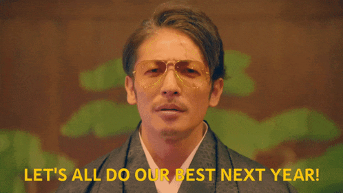 a man wearing sunglasses and a kimono says " let 's all do our best next year "