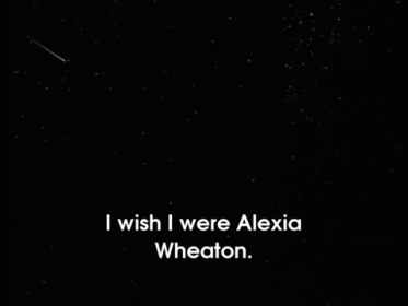 A woman looks through a telescope, wishing she were Alexia Wheaton, as seen in 'The Wish'.