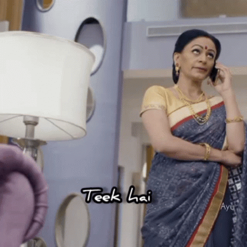 A woman in a blue saree talks on a phone, with the Hindi caption 'Jaisi aapki marzi!' ('As you wish!').