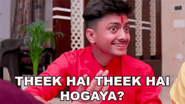 Prince Verma says 'Theek Hai' while wearing a maroon shirt and a gold chain.