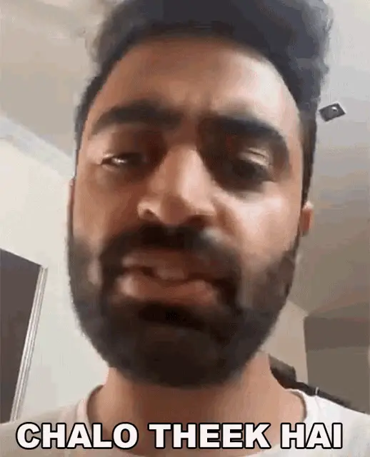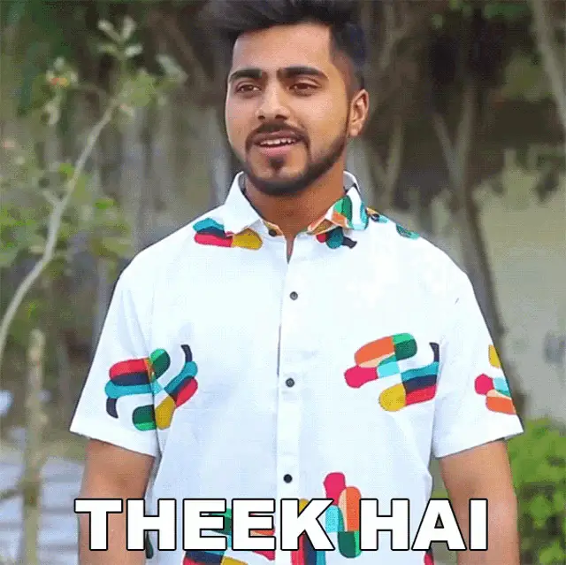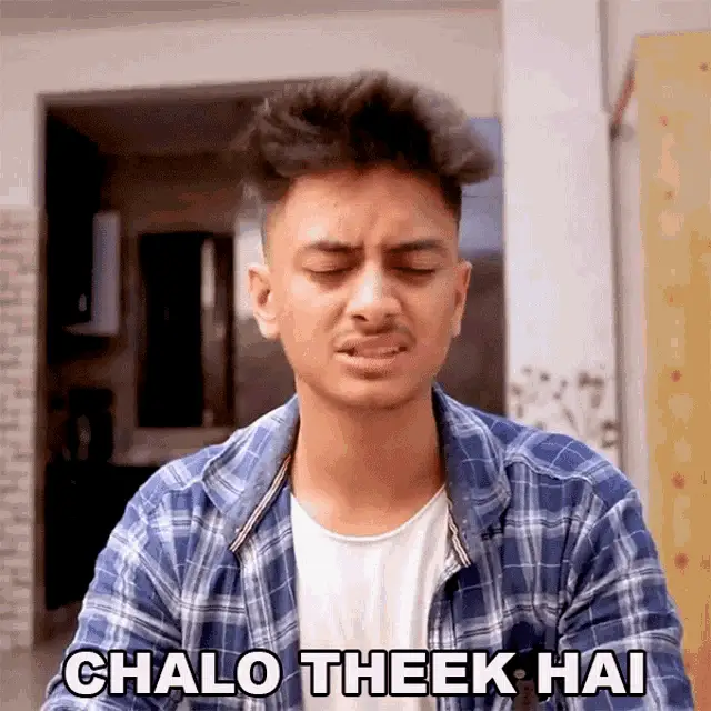 Rahul Jha smiling and saying 'Theek Hai' (Okay) in a plaid shirt.