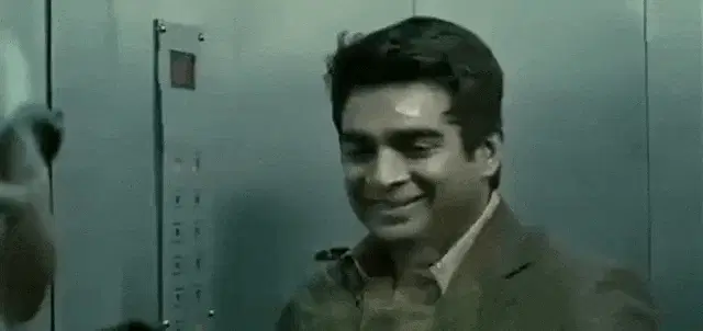 Rahul Jha makes a funny face with the caption 'Theek Hai', wearing a plaid shirt.