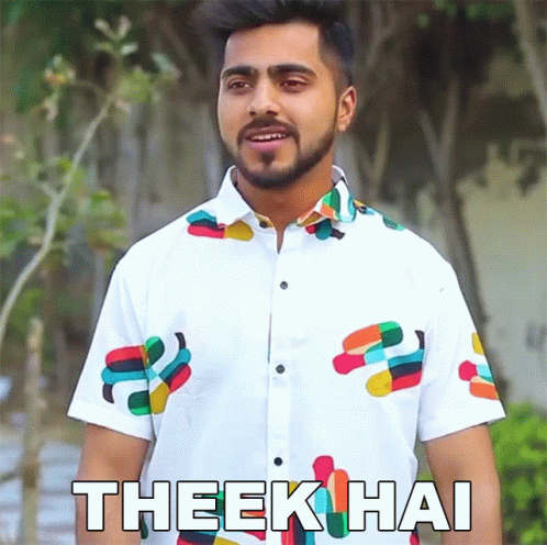 Shivam Sharma, wearing a colorful shirt, says 'Theek Hai' with a smile.