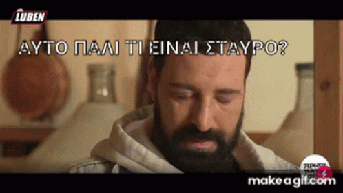 Theodorakis Ypoxthonios reacts to something, asking 'What is this, Stavro?' in a contemplative moment.
