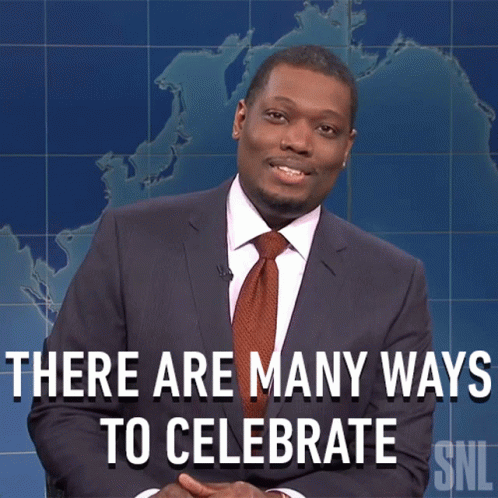 Michael Che from SNL's Weekend Update discusses the many ways to celebrate, appearing in a suit and tie.
