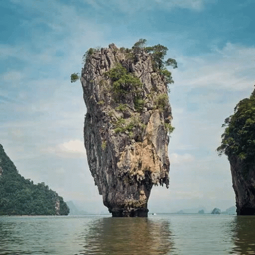 A powerful motivational quote from A Motimate about overcoming betrayal, set against the stunning backdrop of a unique rock island.