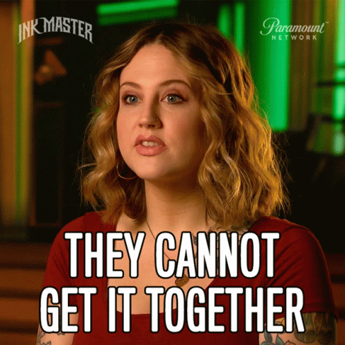 A woman from Ink Master expresses frustration, stating 'They cannot get it together.'