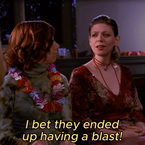 Tara Maclay and Willow Rosenberg from Buffy the Vampire Slayer having a blast, as the caption states.