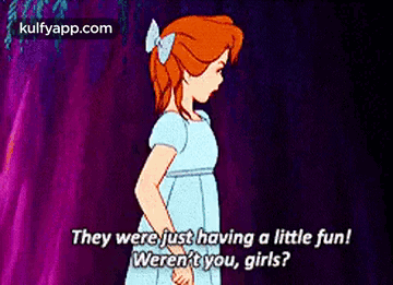 Wendy and Peter Pan discuss the Lost Boys' antics, with Wendy asking, 'They were just having a little fun!'
